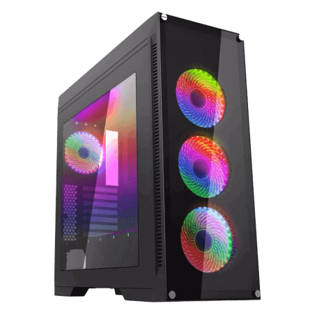 -Fan Position: Front: 3 x 120mm Rainbow Fans (Included), Rear 1 x 120mm Fans (Included)