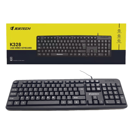The Jertech K328 is a full-size wired keyboard designed for users who need both English and Arabic input, along with reliable performance features for everyday use. With 104 keys, waterproof protection, and anti-ghosting support, it’s built to handle everything from office tasks to casual gaming.