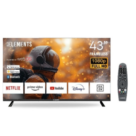 Built with a sleek frameless profile, the KB ELEMENTS 43″ TV adds a contemporary touch to any room. It runs on the WebOS Smart TV platform, offering intuitive navigation, fast access to apps, and smooth content browsing. The included Advanced Magic Remote with voice command allows users to control their TV hands-free, making interaction effortless and modern.