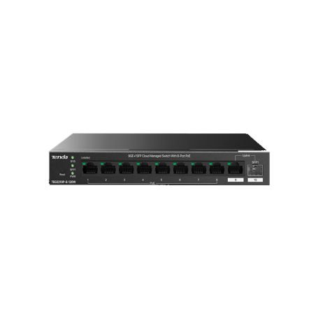 The Tenda SG110PC is a 10-port Gigabit unmanaged PoE switch designed for plug-and-play deployment in small office, retail, and surveillance environments. With 8 PoE-enabled ports and 2 uplink ports, it delivers both data and power over Ethernet, simplifying device connectivity without the need for complex configuration. Its compact form factor and wall/desktop mounting options make it ideal for space-constrained setups.